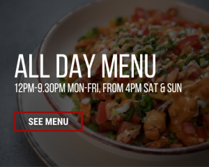 Our All Day Menu is served Tuesday – Sunday, 12pm – 9.30pm