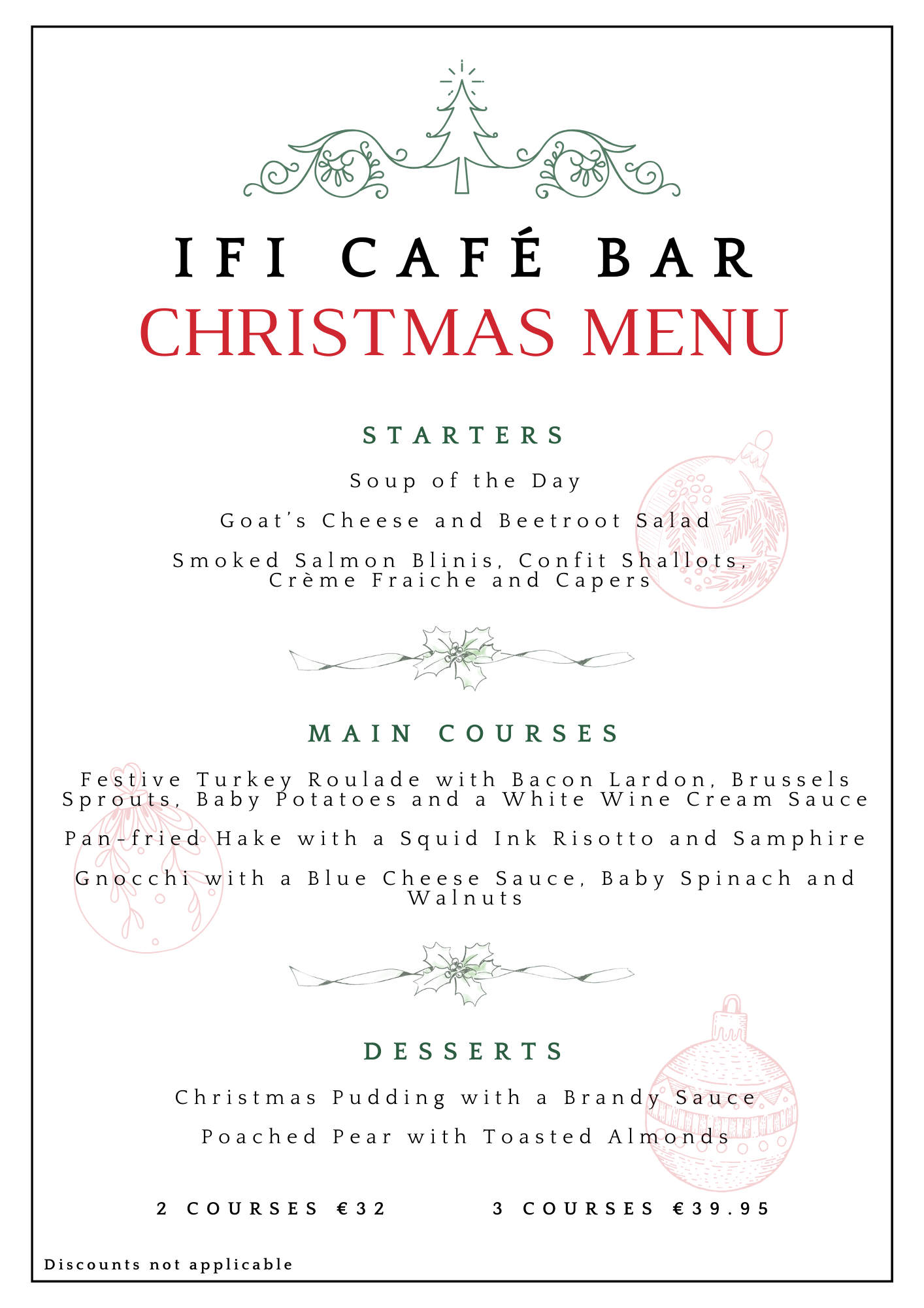 This year’s IFI Café Bar Christmas menu offers two courses for only €32 and two courses for only €39.95.