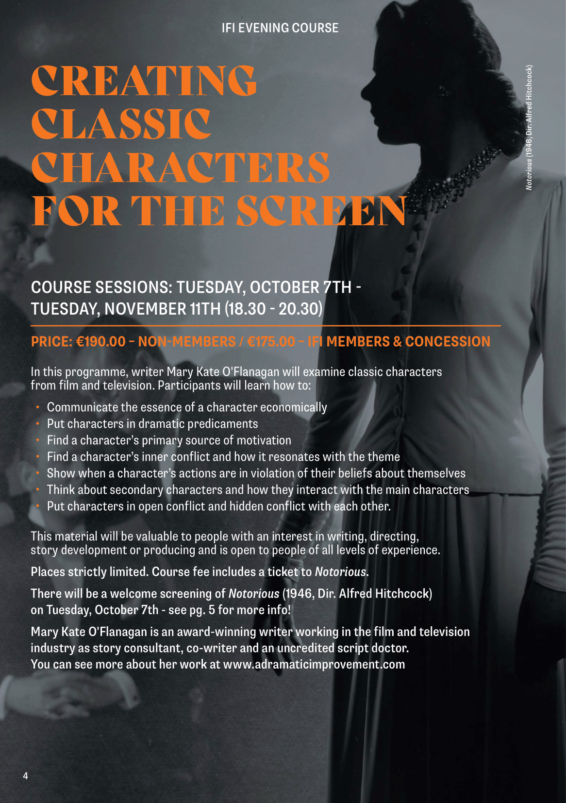 Our next evening course on creating characters for the big screen commences Tuesday, October 7th.