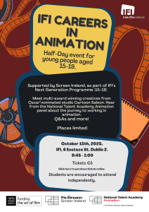Additional tickets for IFI Careers in Animation 2025 are available now. Please note start time 9.45 am.